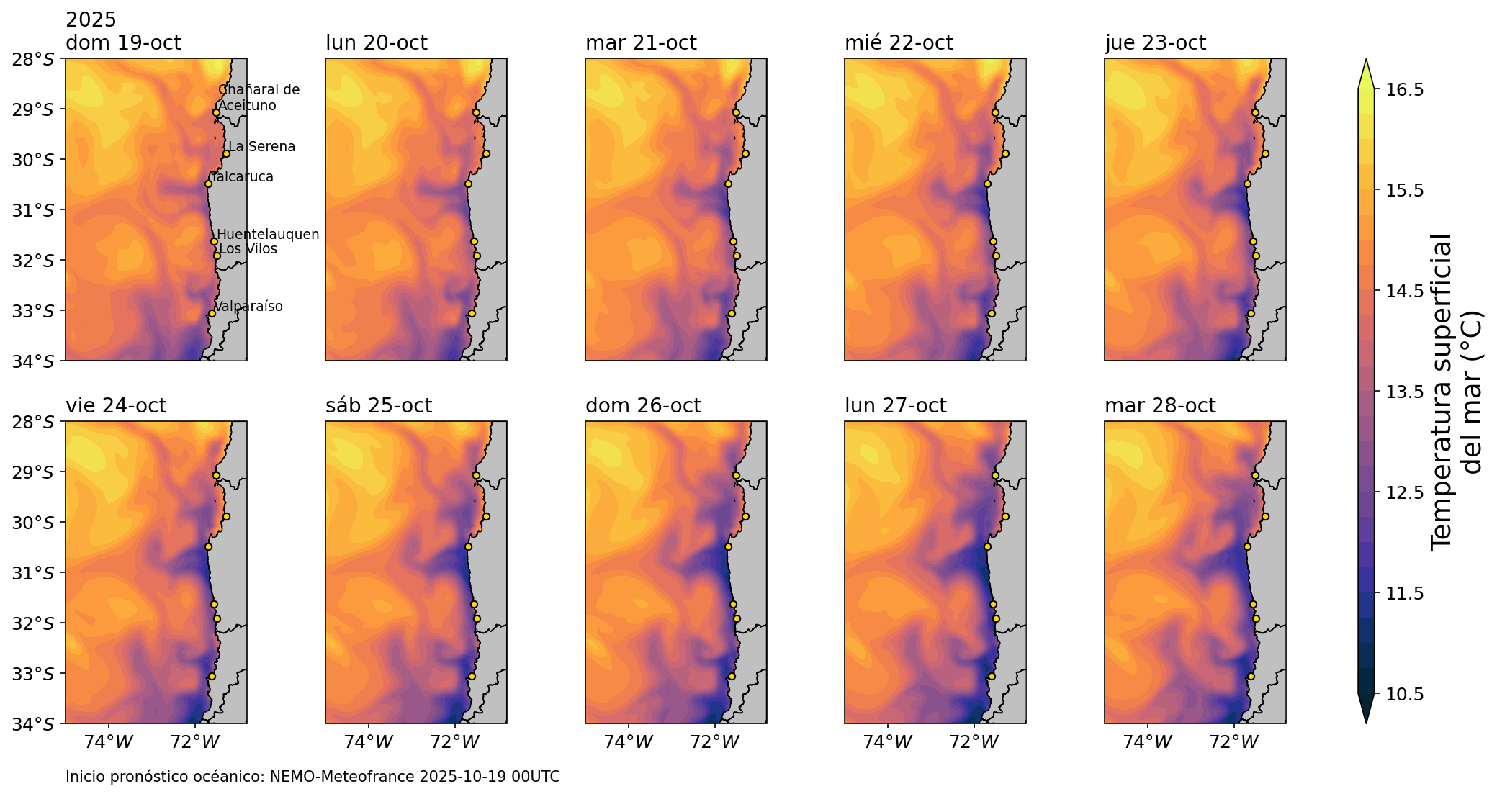 Promedio diario pronosticado de TSM para los próximos 10 días.