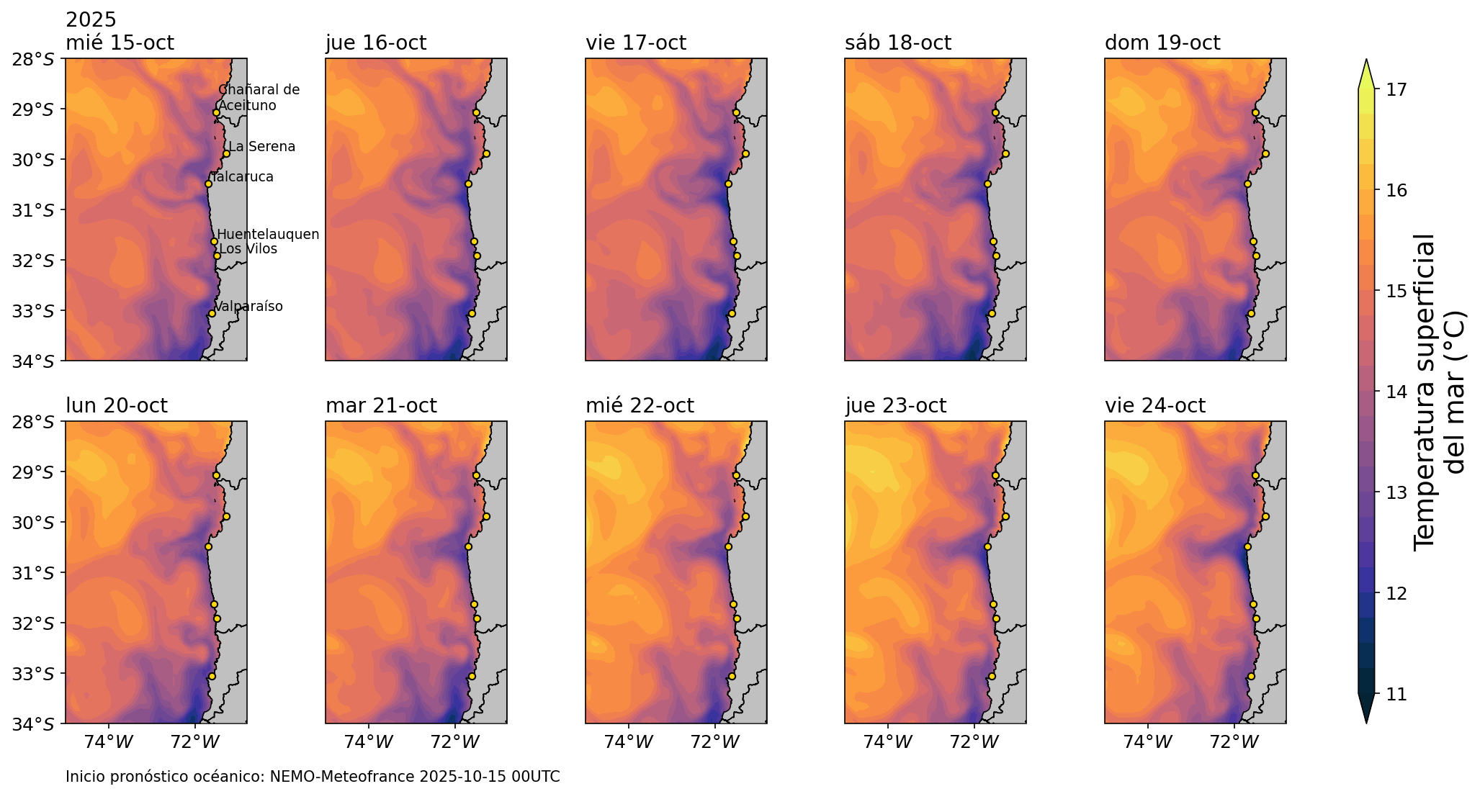 Promedio diario pronosticado de TSM para los próximos 10 días.