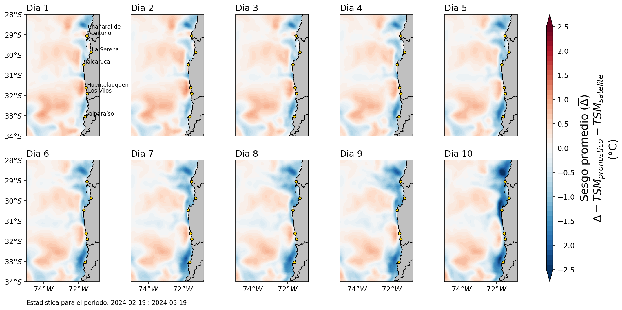 Sesgo diario del pronóstico de Temperatura Superficial del Mar (TSM) para la región de Coquimbo
