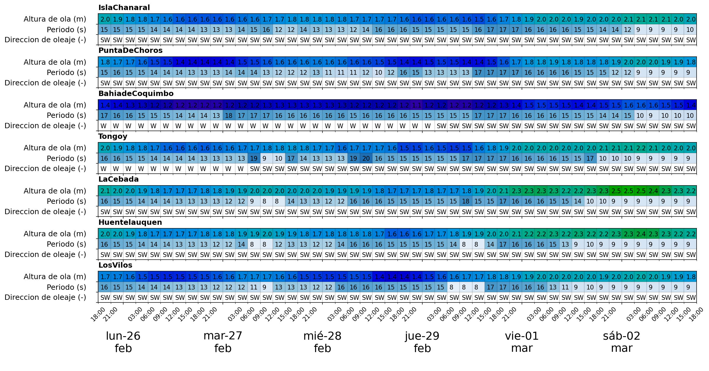 Oleaje Pronóstico Local: cada 3 horas de las condiciones de oleaje de aguas profundas Haz click en la imagen para verla en tamaño completo (se abrirá una nueva pestaña) Validación de pronóstico local de oleaje